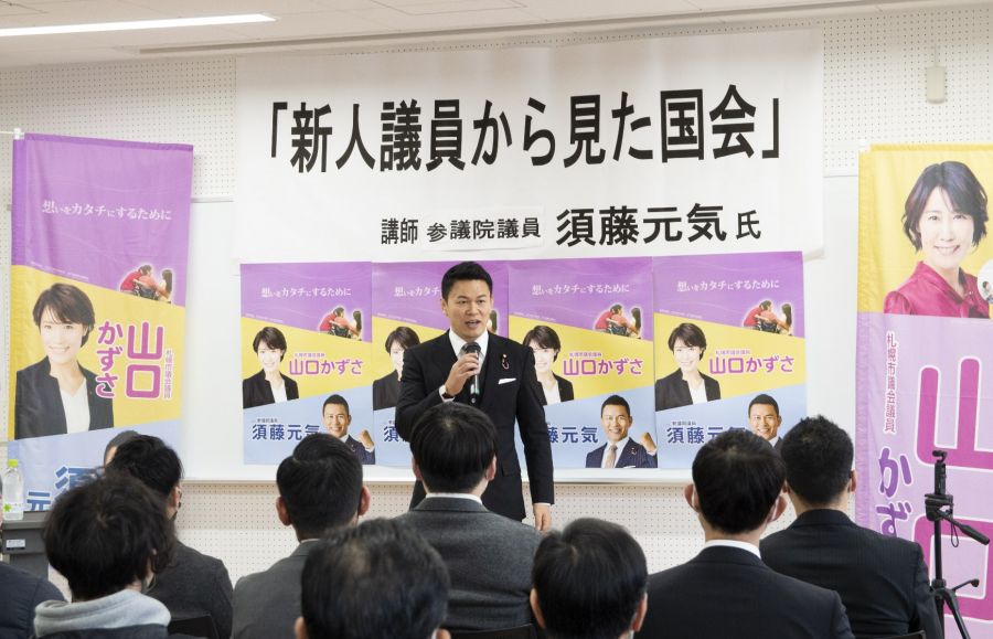 講師として参議院議員 須藤元気さんにご登壇いただき、政党政治と無所属議員としてのあれこれ、須藤さんが議員を目指したエピソードなど盛りだくさんの内容でご講演いただきました。